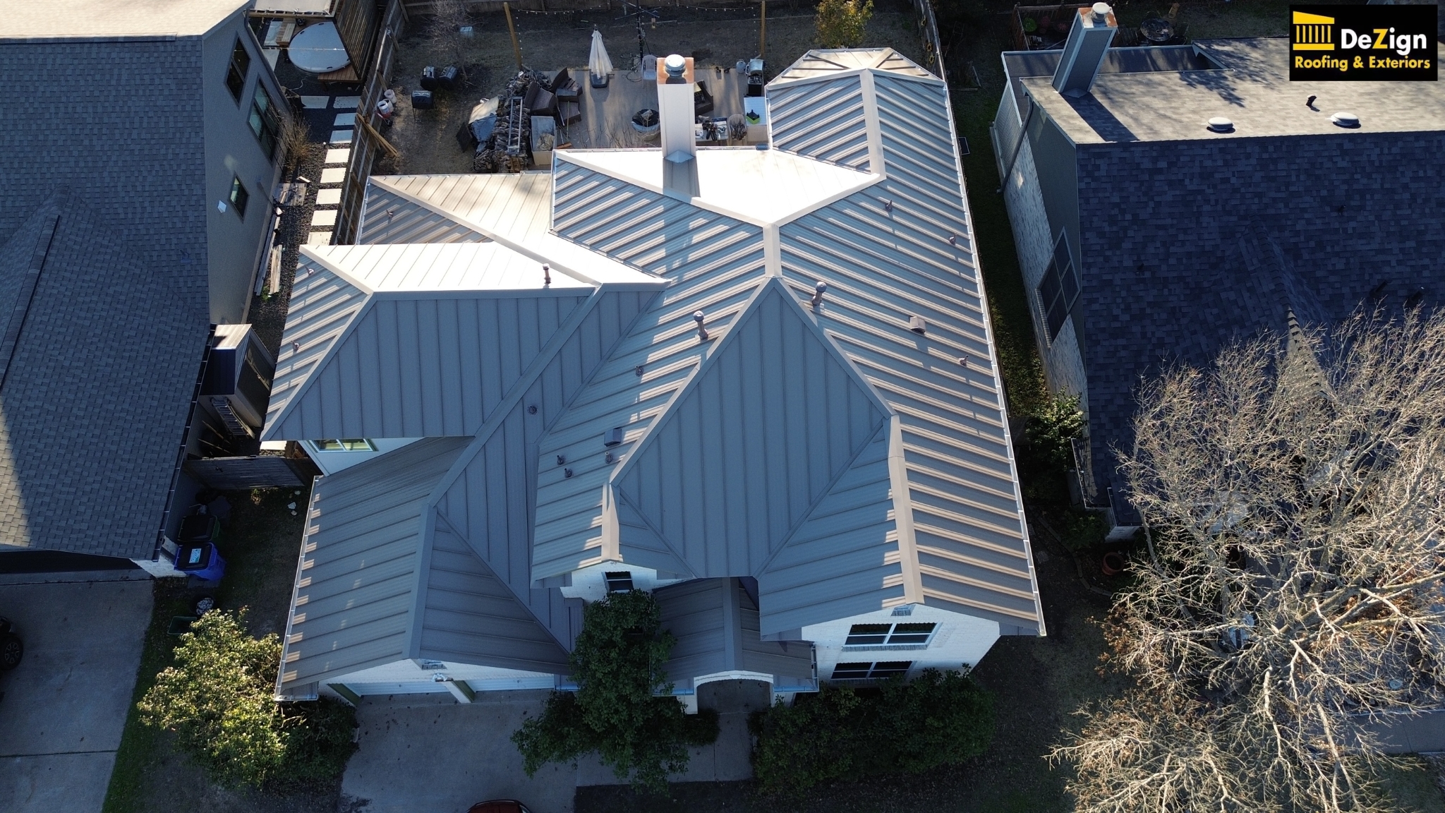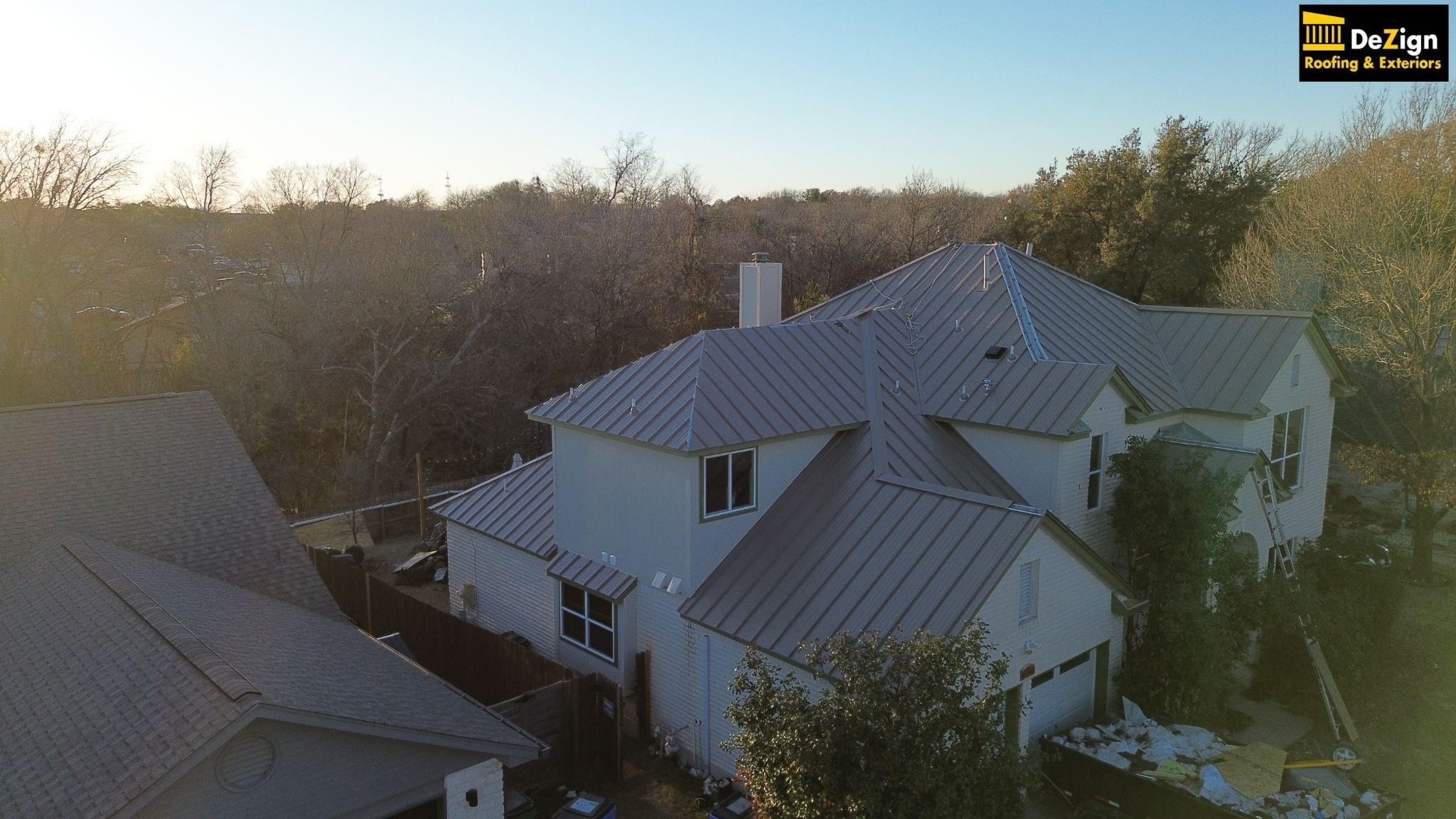 Take a look at our latest transformation in Georgetown, Texas! We’ve completed a full roof replacement on this stunning home, installing a sleek, modern metal roof that not only enhances curb appeal but also improves energy efficiency. This durable new roof is built to withstand the elements, providing the homeowner with peace of mind for years to come.